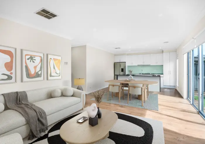 This home combines luxury, comfort, and practicality for the modern family with 3 spacious bedrooms, including a master suite with a walk-in robe and private ensuite and the two additional bedrooms are generously sized with BIRs and a double garage for secure parking ensures both privacy and comfort. Two living areas provide ample space for both relaxed family living and formal entertaining. The modern kitchen, central to the home, boasts quality finishes, making it a hub for family gatherings and shared meals.